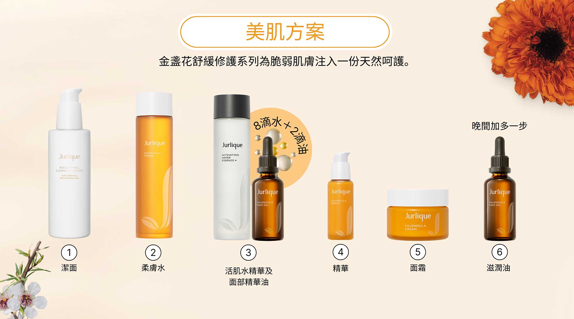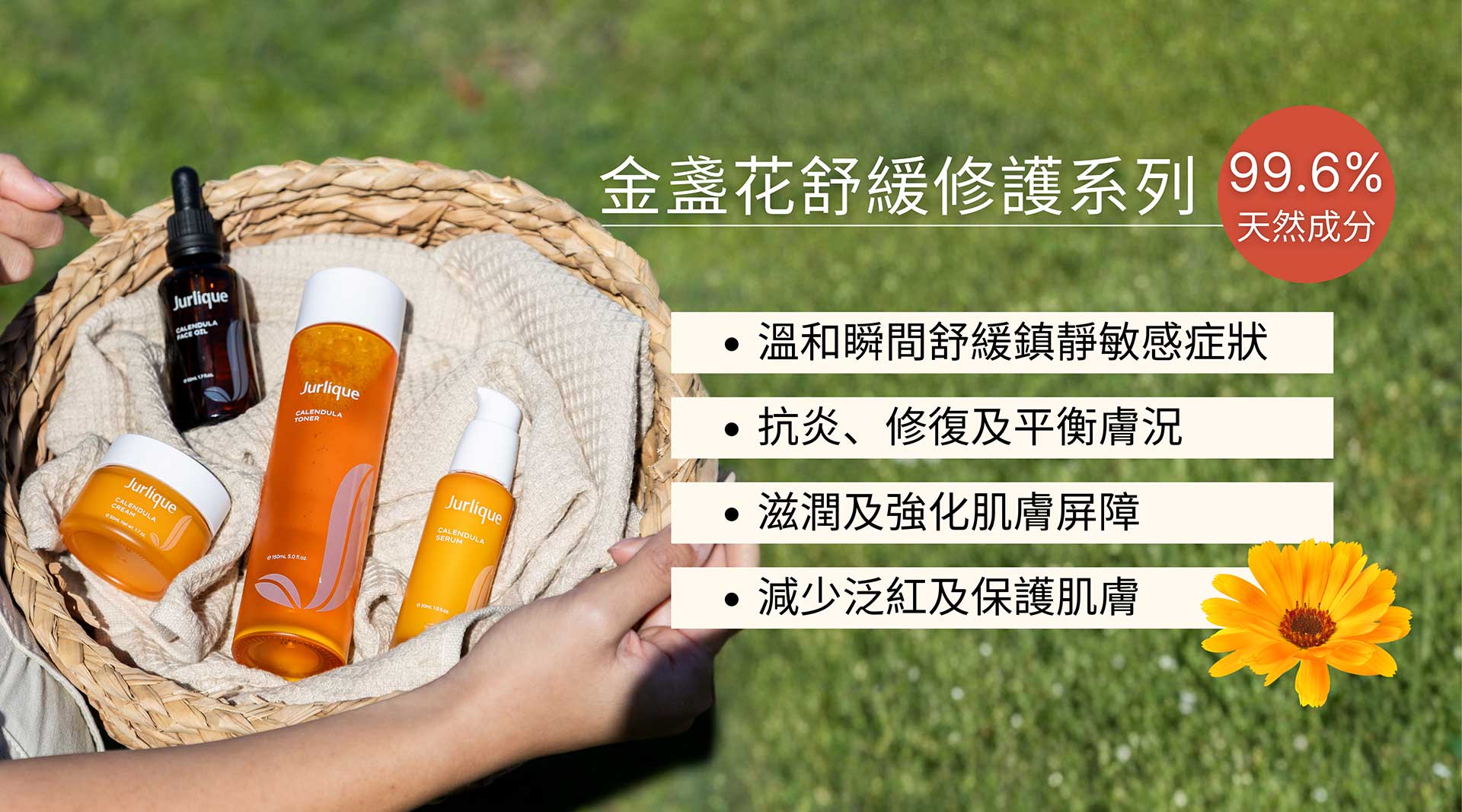 金盞花舒緩修護柔膚水1ml金盞花舒緩修護精華2ml金盞花舒緩修護面霜2ml金盞花舒緩修護滋潤油1.5ml